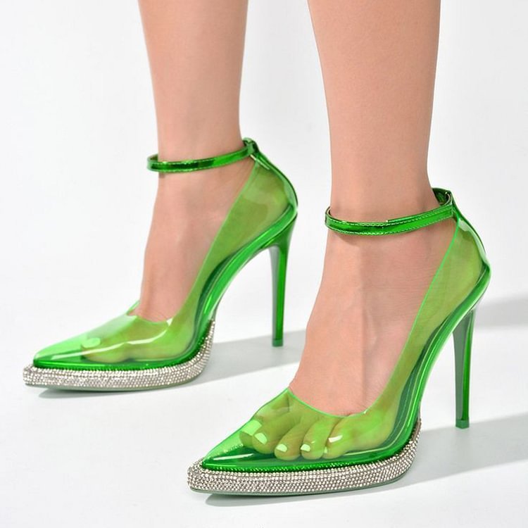 Product information: Pattern: solid color Color: green Shoe Upper material: PU Heel shape: stiletto heels Size: 35, 36, 37, 38, 39, 40, 41, 42, 43, 44, 45, 46